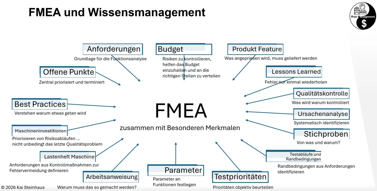 FMEA ist in der Lage die Verknüpfung von allen notwendigen technischen Disziplinen herzustellen. Durch die Verknüpfung erhält man die ultimative Wissensdatenbank.